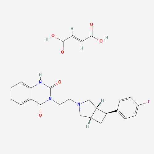 - Synonyms:Belaperidone fumarate;LU-111995 fumarate;UNII-S0QAR4Z7QJ;S0QAR4Z7QJ;2,4(1H,3H)-Quinazolinedione, 3-(2-((1S,5R,6S)-6-(4-fluorophenyl)-3-azabicyclo(3.2.0)hept-3-yl)ethyl)-, (2E)-2-butenedioate (1:1);345226-68-8;SCHEMBL7983839;Q27288400