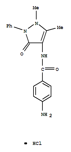 - 2908-74-9/Benzamide,4-amino-N-(2,3-dihydro-1,5-dimethyl-3-oxo-2-phenyl-1H-pyrazol-4-yl)-,hydrochloride (1:1)