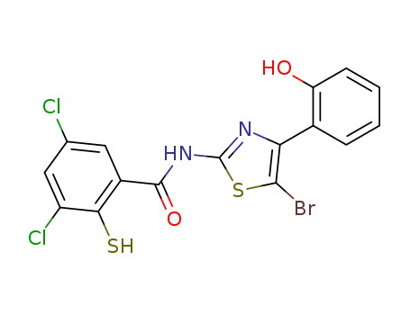 - 61954-71-0/Benzamide, N-[5-bromo-4-(4-hydroxyphenyl)-2-thiazolyl]-3,5-dichloro-2-mercapto-