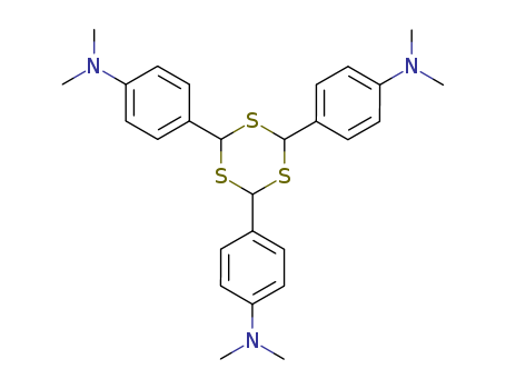 - Synonyms:Aniline,4,4',4''-s-trithiane-2,4,6-triyltris[N,N-dimethyl- (7CI); 1,3,5-Trithiane,benzenamine deriv.; s-Trithiane, 2,4,6-tris[p-(dimethylamino)phenyl]-, b- (7CI); NSC 72817