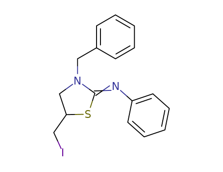 - 138841-29-9/Benzenamine, N-[5-(iodomethyl)-3-(phenylmethyl)-2-thiazolidinylidene]-