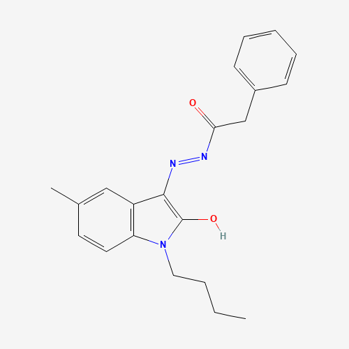 - Synonyms:DTXSID901126860;AKOS002703908;Benzeneacetic acid, 2-(1-butyl-1,2-dihydro-5-methyl-2-oxo-3H-indol-3-ylidene)hydrazide;609781-35-3