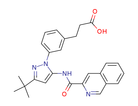 - Synonyms:Benzenepropanoic acid, 3-[3-(1,1-dimethylethyl)-5-[(3-isoquinolinylcarbonyl)amino]-1H-pyrazol-1-yl]-