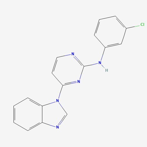 - Synonyms:benzimidazole deriv. 2;CHEMBL74680;BDBM5374;DTXSID601183556;4-(1H-Benzimidazol-1-yl)-N-(3-chlorophenyl)-2-pyrimidinamine;4-(1H-1,3-benzodiazol-1-yl)-N-(3-chlorophenyl)pyrimidin-2-amine;710328-95-3