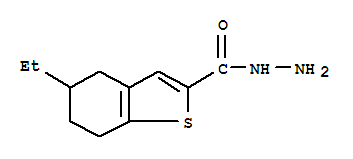 - Synonyms:Benzo[b]thiophene-2-carboxylic acid, 5-ethyl-4,5,6,7-tetrahydro-, hydrazide (9CI)