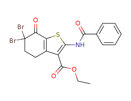 - Name: Benzo[b]thiophene-3-carboxylic acid, 2-(benzoylamino)-6,6-dibromo-4,5,6,7-tetrahydro-7-oxo-, ethyl ester