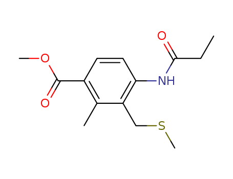 - Name: Benzoic acid, 2-methyl-3-[(methylthio)methyl]-4-[(1-oxopropyl)amino]-, methyl ester