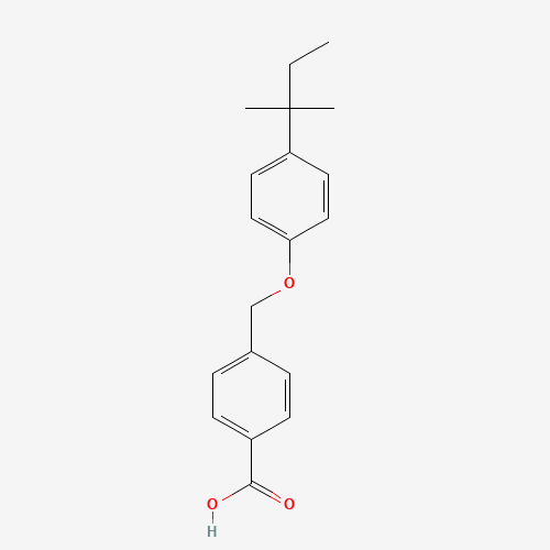 - Synonyms:132991-25-4;Benzoic acid, 4-[[4-(1,1-dimethylpropyl)phenoxy]methyl]-;SCHEMBL8457176;DTXSID401215808;AKOS002669829;4-[[4-(1,1-Dimethylpropyl)phenoxy]methyl]benzoic acid