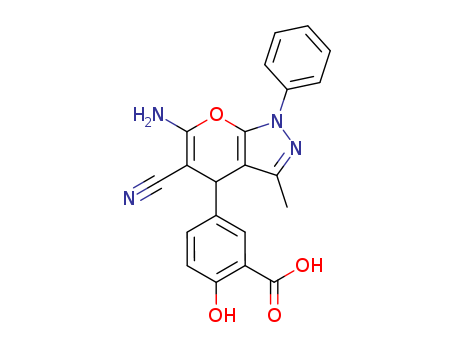 Benzoic acid, 5-(6-amino-5-cyano-1,4-dihydro-3-methyl-1-phenylpyrano[2,3-c]pyrazol- 4-yl)-2-hydroxy-(138851-37-3)