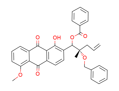 Benzoic acid (S)-2-benzyloxy-1-(1-hydroxy-5-methoxy-9,10-dioxo-9,10-dihydro-anthracen-2-yl)-2-methyl-pent-4-enyl ester(138116-20-8)