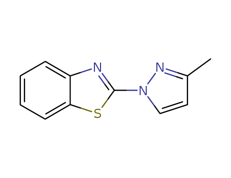- Synonyms:Benzothiazole, 2-(3-methyl-1H-pyrazol-1-yl)- (9CI)