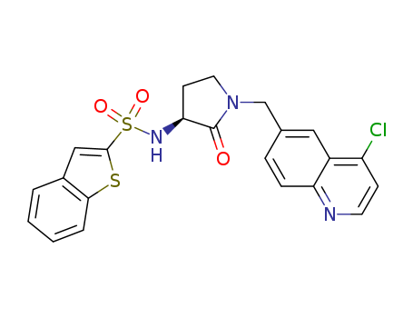 - Synonyms:Benzothiophene-2-sulfonic acid [1-(4-chloroquinolin-6-ylmethyl)-2-oxopyrrolidin-3-(S)-yl]-amide