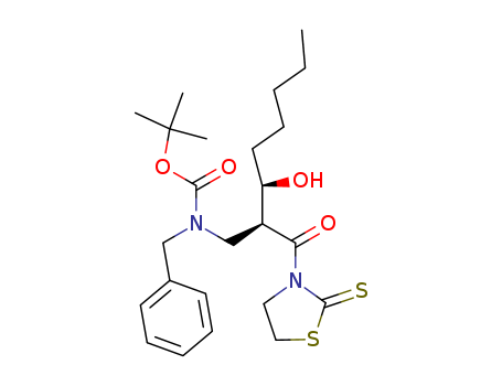 Benzyl-[(2S,3R)-3-hydroxy-2-(2-thioxo-thiazolidine-3-carbonyl)-octyl]-carbamic acid tert-butyl ester(98768-09-3)