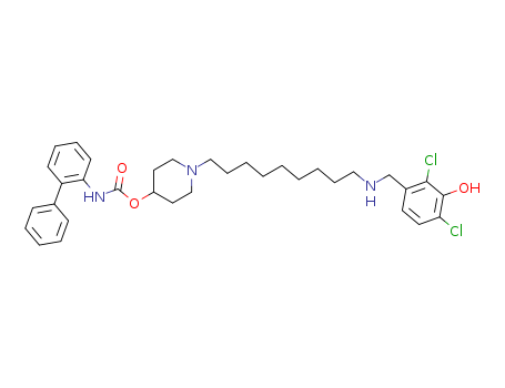 - Synonyms:Biphenyl-2-yl-carbamic acid 1-[9-(2,4-dichloro-3-hydroxy-benzylamino)-nonyl]-piperidin-4-yl ester