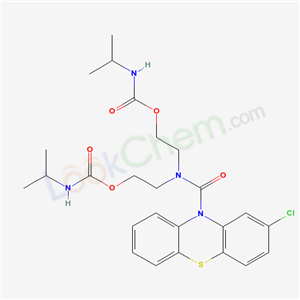 - Synonyms:{[(2-chloro-10H-phenothiazin-10-yl)carbonyl]imino}diethane-2,1-diyl bis(propan-2-ylcarbamate);Carbamic acid,(1-methylethyl)-,(((2-chloro-10H-phenothiazin-10-yl)carbonyl)imino)di-2,1-ethanediyl ester;