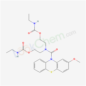- Synonyms:Carbamic acid,ethyl-,(((2-methoxy-10H-phenothiazin-10-yl)carbonyl)imino)di-2,1-ethanediyl ester;2-methoxy-phenothiazine-10-carboxylic acid bis-(2-ethylcarbamoyloxy-ethyl)-amide;{[(2-methoxy-10H-phenothiazin-10-yl)carbonyl]imino}diethane-2,1-diyl bis(ethylcarbamate);