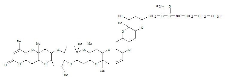 - Synonyms:1H-Pyrano[2'',3'':5',6']pyrano[2',3':5,6]pyrano[3,2-b]pyrano[2'''''',3'''''':5''''',6''''']pyrano[2''''',3''''':5'''',6'''']pyrano[2'''',3'''':6''',7''']oxepino[2''',3''':6'',7'']oxepino[2'',3'':5',6']pyrano[2',3':5,6]pyrano[2,3-g]oxocin,brevetoxin B deriv.; BTX-B1; Brevetoxin B1; Toxin BTX-B1