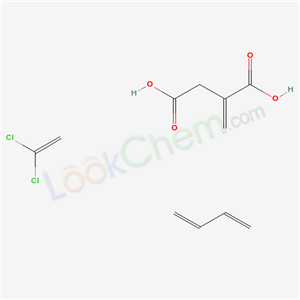 - Synonyms:2-methylidenebutanedioic acid;Butanedioic acid,methylene-,polymer with 1,3-butadiene and 1,1-dichloroethene;
