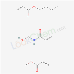 - Synonyms:Butyl acrylate,methyl acrylate,N-methylolacrylamide polymer;2-Propenoic acid,butyl ester,polymer with N-(hydroxymethyl)-2-propenamide and methyl 2-propenoate;