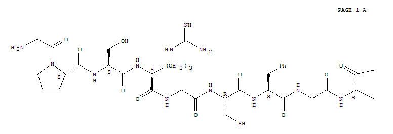 - Synonyms:C-Typenatriuretic factor-22 (pig reduced),2-L-proline-4-L-arginine-9-L-valine-16-L-alanine-; C-Type natriuretic factor-22(Triakis scyllium reduced); L-Cysteine,glycyl-L-prolyl-L-seryl-L-arginylglycyl-L-cysteinyl-L-phenylalanylglycyl-L-valyl-L-lysyl-L-leucyl-L-a-aspartyl-L-arginyl-L-isoleucylglycyl-L-alanyl-L-methionyl-L-serylglycyl-L-leucylglycyl-