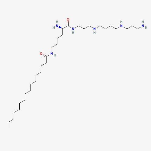 - Synonyms:AMXT-1501;C3ZUM5A33F;CHEMBL474635;SCHEMBL10033832;MQT 1501;NSC746711;NSC-746711;HY-124617;CS-0087137;(R)-N-(5-Amino-6-((3-((4-((3-aminopropyl)amino)butyl)amino)propyl)amino)-6-oxohexyl)palmitamide;Hexadecanamide, N-[(5R)-5-amino-6-[[3-[[4-[(3-aminopropyl)amino]butyl]amino]propyl]amino]-6-oxohexyl]-;N-[(5R)-5-Amino-6-[[3-[[4-[(3-aminopropyl)amino]butyl]amino]propyl]amino]-6-oxohexyl]hexadecanamide