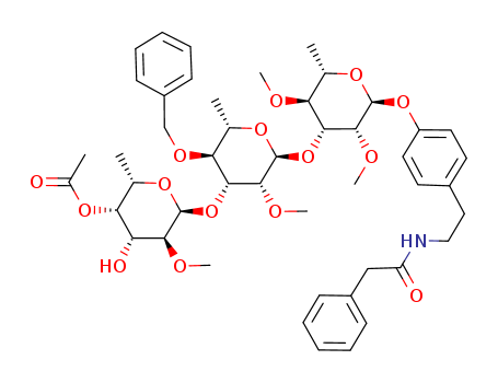 - 1026074-12-3/{(1R,2R,3R)-2-[(2,3,4-tri-O-benzyl-6-deoxy-α-L-galactopyranosyl)oxy]-3-(2-methoxycarbonylethyl)cyclohex-1-yl} 2,4,6-tri-O-benzoyl-3-O-[(1S)-1-benzyloxycarbonyl-2-cyclohexylethyl]-β-D-galactopyranoside