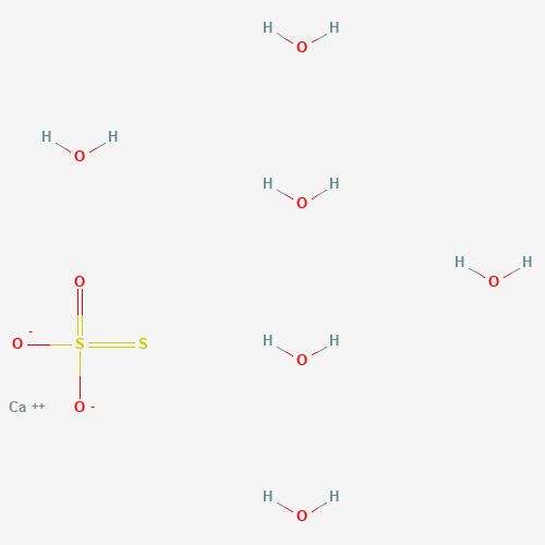 - Synonyms:Calcium thiosulfate hexahydrate;C54TDQ176V;Calcium thiosulfate, hexahydrate;Calcium thiosulfate hexahydrate [MI];UNII-C54TDQ176V;Thiosulfuric acid, calcium salt (1:1), hexahydrate;10035-02-6;Thiosulfuric acid (H2S2O3), calcium salt (1:1), hexahydrate;Q27275199
