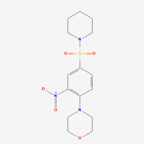 - Synonyms:Cambridge id 5757537;DTXSID401212680;AKOS001367536;AB00769106-01;SR-01000219163;SR-01000219163-1;Z31211408;4-[2-Nitro-4-(1-piperidinylsulfonyl)phenyl]morpholine;53162-44-0