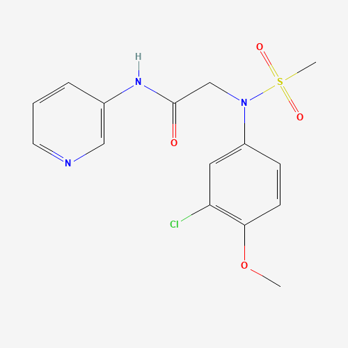 - Synonyms:Cambridge id 6465410;DTXSID901144997;STK917409;AKOS000396327;AB00108422-01;2-[(3-Chloro-4-methoxyphenyl)(methylsulfonyl)amino]-N-3-pyridinylacetamide;N~2~-(3-chloro-4-methoxyphenyl)-N~2~-(methylsulfonyl)-N-pyridin-3-ylglycinamide;428476-07-7