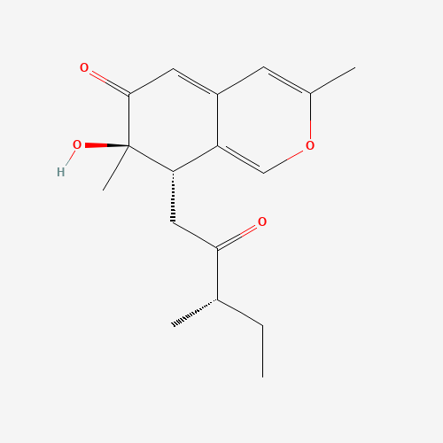 - Synonyms:Chermesinone A;CHEMBL1801779;CHEBI:67396;DTXSID201118319;BDBM50347536;Q27135856;(7R,8S)-7,8-Dihydro-7-hydroxy-3,7-dimethyl-8-[(3S)-3-methyl-2-oxopentyl]-6H-2-benzopyran-6-one;(7R,8S)-7-Hydroxy-3,7-dimethyl-8-[(3S)-3-methyl-2-oxopentyl]-7,8-dihydro-6H-isochromen-6-one;1300040-79-2
