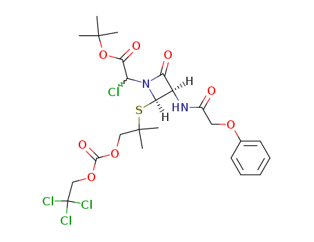 Chloro-[(2R,3R)-2-[1,1-dimethyl-2-(2,2,2-trichloro-ethoxycarbonyloxy)-ethylsulfanyl]-4-oxo-3-(2-phenoxy-acetylamino)-azetidin-1-yl]-acetic acid tert-butyl ester(35636-30-7)