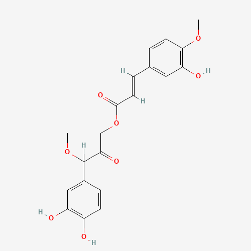 - Synonyms:Cimiracemate C;UNII-40OO88SKHP;40OO88SKHP;2-Propenoic acid, 3-(3-hydroxy-4-methoxyphenyl)-, 3-(3,4-dihydroxyphenyl)-3-methoxy-2-oxopropyl ester, (2E)-(-)-;488804-01-9;Q27258339