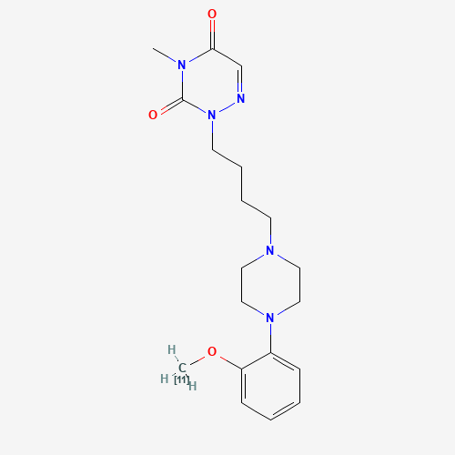 - Synonyms:CUMI-101 C-11;(11C)Cumi-101;UNII-2G7CCY4TFN;2G7CCY4TFN;903528-74-5;1,2,4-Triazine-3,5(2H,4H)-dione, 2-(4-(4-(2-(methoxy-11C)phenyl)-1-piperazinyl)butyl)-4-methyl-;SCHEMBL4546508;CHEMBL5199786;DTXSID30238096;Q27254702;[O-methyl-11C]2-(4-(4-(2-Methoxyphenyl)piperazin-1-yl)butyl)-4-methyl-1,2,4-triazine-3,5(2H,4H)dione