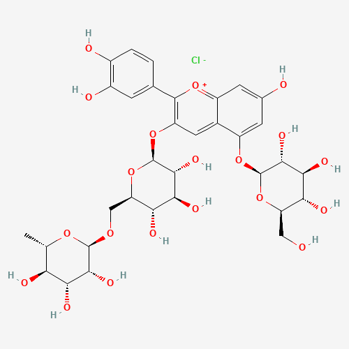 - Synonyms:C04787;62024-14-0;Cyanidin 3-rutinoside-5-glucoside;(2R,3R,4R,5R,6S)-2-[[(2R,3S,4S,5R,6S)-6-[2-(3,4-dihydroxyphenyl)-7-hydroxy-5-[(2S,3R,4S,5S,6R)-3,4,5-trihydroxy-6-(hydroxymethyl)tetrahydropyran-2-yl]oxy-chromenylium-3-yl]oxy-3,4,5-trihydroxy-tetrahydropyran-2-yl]methoxy]-6-methyl-tetrahydropyran-3,4,5-triol;DTXSID20474608;CHEBI:166641;Cyanidin 3-rutinoside 5-glucoside chloride;(2R,3R,4R,5R,6S)-2-[[(2R,3S,4S,5R,6S)-6-[2-(3,4-dihydroxyphenyl)-7-hydroxy-5-[(2S,3R,4S,5S,6R)-3,4,5-trihydroxy-6-(hydroxymethyl)oxan-2-yl]oxychromenylium-3-yl]oxy-3,4,5-trihydroxyoxan-2-yl]methoxy]-6-methyloxane-3,4,5-triol;chloride