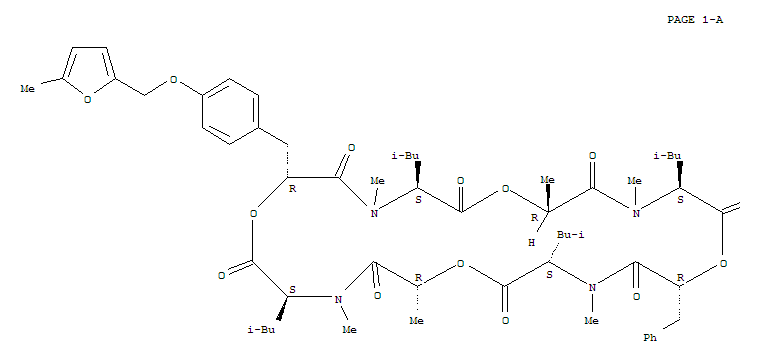 - Name: Cyclo[(aR)-a-hydroxybenzenepropanoyl-N-methyl-L-leucyl-(2R)-2-hydroxypropanoyl-N-methyl-L-leucyl-(aR)-a-hydroxy-4-[(5-methyl-2-furanyl)methoxy]benzenepropanoyl-N-methyl-L-leucyl-(2R)-2-hydroxypropanoyl-N-methyl-L-leucyl](9CI)
