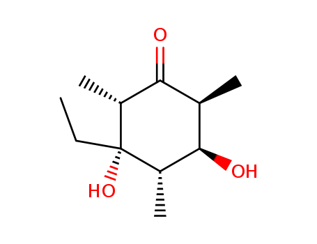 - Synonyms:Cyclohexanone, 3-ethyl-3,5-dihydroxy-2,4,6-trimethyl-, (2S,3S,4S,5S,6S)- (9CI)
