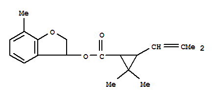 - Synonyms:Cyclopropanecarboxylicacid, 2,2-dimethyl-3-(2-methyl-1-propenyl)-,2,3-dihydro-7-methyl-3-benzofuranyl ester (9CI); Cyclopropanecarboxylic acid,2,2-dimethyl-3-(2-methylpropenyl)-, 2,3-dihydro-7-methyl-3-benzofuranyl ester(8CI); 2,3-Dihydro-7-methyl-3-benzofuranyl chrysanthemumate; ES 56