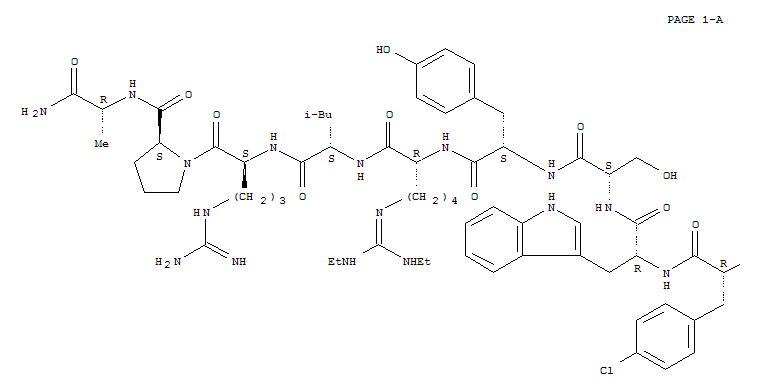- Synonyms:D-Alaninamide,N-acetyl-3-(2-naphthalenyl)-D-alanyl-4-chloro-D-phenylalanyl-D-tryptophyl-L-seryl-L-tyrosyl-N6-[bis(ethylamino)methylene]-D-lysyl-L-leucyl-L-arginyl-L-prolyl-(9CI);Deterelix;Detirelix;