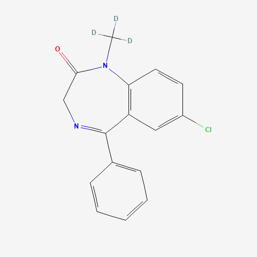 - Synonyms:Diazepam-d3;83056-49-9;2H-1,4-Benzodiazepin-2-one, 7-chloro-1,3-dihydro-1-(methyl-d3)-5-phenyl- (9CI);1-Trideuteromethyl-5-phenyl-7-chloro-1,3-dihydro-2H-1,4-benzodiazepin-2-one;Diazepam D3;Diazepam-D3, 1mg/ml in Methanol;DTXSID501344674;Diazepam-D3, 0.1mg/ml in Methanol