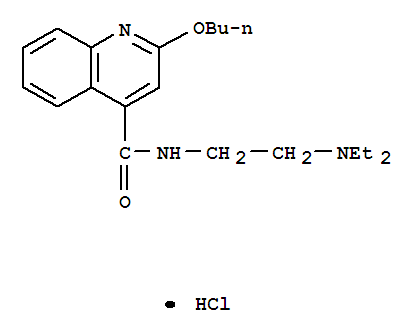 - Synonyms:4-Quinolinecarboxamide,2-butoxy-N-[2-(diethylamino)ethyl]-, monohydrochloride (9CI);Cinchoninamide,2-butoxy-N-[2-(diethylamino)ethyl]-, monohydrochloride (8CI);2-Butoxy-N-(2-diethylaminoethyl)cinchoninamide hydrochloride;2-Butoxy-N-(2-diethylaminoethyl)cinchoninic acid amide hydrochloride;2-n-Butoxy-N-(2-diethylaminoethyl)cinchoninamide hydrochloride;Benzolin (local anesthetic);Cincaine;Cincaine chloride;Cinchocainehydrochloride;Cinchocainium chloride;Nupercainehydrochloride;Percain;Percaine;Percamin S;Sovcain;Sovcaine;