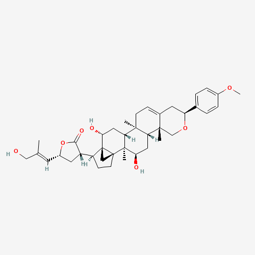 - Synonyms:Dichapetalin J;876610-27-4;14,18-Cyclocholesta-2,24-dieno(4,3-c)pyran-21-oic acid, 2',4,5',6'-tetrahydro-7,12,23,26-tetrahydroxy-6'-(4-methoxyphenyl)-4,8-dimethyl-, gamma-lactone, (4alpha,5alpha,6'alpha,7alpha,12beta,13alpha,17alpha,20S,23R,24E)-;CHEMBL448039