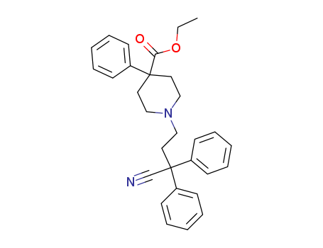 - Synonyms:Isonipecoticacid, 1-(3-cyano-3,3-diphenylpropyl)-4-phenyl-, ethyl ester (6CI,7CI,8CI);1-(3-Cyano-3,3-diphenylpropyl)-4-phenylpiperidine-4-carboxylic acid ethylester;Diphenoxylate;