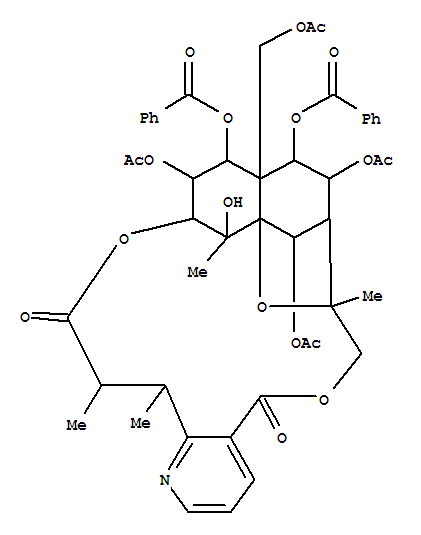 - Synonyms:Evonine,8-(acetyloxy)-O1,O9-dibenzoyl-O1,O9-dideacetyl-8-deoxo-, (8a)-;8,11-Epoxy-9,12-ethano-11,15-methano-11H-[1,8]dioxacycloheptadecino[4,3-b]pyridine,evonine deriv.; (-)-Ebenifoline E-III;8,11-Epoxy-9,12-ethano-11,15-methano-11H-[1,8]dioxacycloheptadecino[4,3-b]pyridine-5,17-dione,10,14,22-tris(acetyloxy)-12-[(acetyloxy)methyl]-13,21-bis(benzoyloxy)-7,8,9,10,12,13,14,15,18,19-decahydro-20-hydroxy-8,18,19,20-tetramethyl-,[8R-(8R*,9R*,10R*,11S*,12R*,13R*,14R*,15S*,18S*,19S*,20S*,21S*,22R*)]-;Ebenifoline E-III