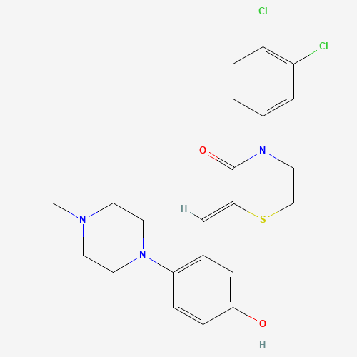 - Synonyms:Elzasonan metabolite M3;DMT4KZK6LQ;UNII-DMT4KZK6LQ;1809096-97-6;(2Z)-4-(3,4-Dichlorophenyl)-2-((5-hydroxy-2-(4-methyl-1-piperazinyl)phenyl)methylene)-3-thiomorpholinone;3-Thiomorpholinone, 4-(3,4-dichlorophenyl)-2-((5-hydroxy-2-(4-methyl-1-piperazinyl)phenyl)methylene)-, (2Z)-