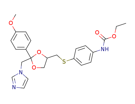 - Synonyms:Carbamicacid, [4-[[[(2R,4R)-2-(1H-imidazol-1-ylmethyl)-2-(4-methoxyphenyl)-1,3-dioxolan-4-yl]methyl]thio]phenyl]-,ethyl ester, rel- (9CI); Carbamic acid,[4-[[[2-(1H-imidazol-1-ylmethyl)-2-(4-methoxyphenyl)-1,3-dioxolan-4-yl]methyl]thio]phenyl]-,ethyl ester, cis-(?à)-; Carbamic acid,[4-[[[2-(1H-imidazol-1-ylmethyl)-2-(4-methoxyphenyl)-1,3-dioxolan-4-yl]methyl]thio]phenyl]-,ethyl ester, cis-; Erbulozole; R 55104