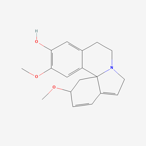 - Synonyms:Erythrinan-16-ol, 1,2,6,7-tetradehydro-3,15-dimethoxy-, (3.beta.)-;DTXSID401155791;Erythrinan-16-ol, 1,2,6,7-tetradehydro-3,15-dimethoxy-, hydrochloride, (3.beta.)-;3,15-Dimethoxy-1,2,6,7-tetradehydroerythrinan-16-ol, (3.beta.)-;4,5,10,11-Tetrahydro-8,11-dimethoxy-2H-indolo[7a,1-a]isoquinolin-7-ol;26215-56-5