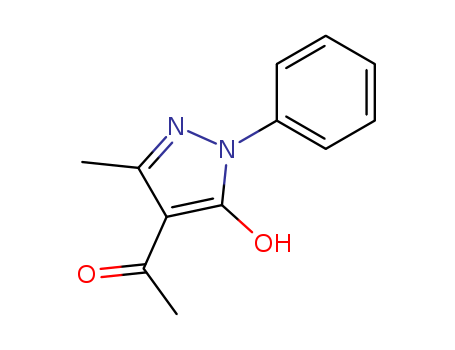- Synonyms:1-phenyl-3-methyl-4-acetyl-5-pyrazolone;4-acetyl-5-hydroxy-3-methyl-1-phenylpyrazole;1-(5-hydroxy-3-methyl-1-phenyl-1H-pyrazol-4-yl)ethanone;1-phenyl-3-methyl-4-acetyl-2-pyrazolin-5-one;1-phenyl-3-methyl-4-acetylpyrazol-5-one;4-acetyl-5-methyl-2-phenyl-1,2-dihydro-3H-pyrazol-3-one;4-acetyl-5-hydroxy-3-methyl-1-phenyl-1H-pyrazole;