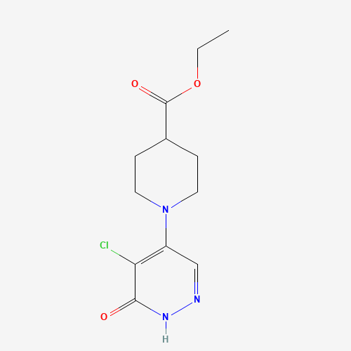 - Synonyms:952183-76-5;Ethyl 1-(5-chloro-6-oxo-1,6-dihydro-4-pyridazinyl)-4-piperidinecarboxylate;Ethyl 1-(5-chloro-6-oxo-1,6-dihydropyridazin-4-yl)piperidine-4-carboxylate;ethyl 1-(5-chloro-6-oxo-1H-pyridazin-4-yl)piperidine-4-carboxylate;DTXSID301145547;CNB18376;MFCD09864820;AKOS005072491;EB-0822;CS-0299070;A922969;Z127873876;Ethyl 1-(5-chloro-6-hydroxypyridazin-4-yl)piperidine-4-carboxylate;Ethyl 1-(5-chloro-1,6-dihydro-6-oxo-4-pyridazinyl)-4-piperidinecarboxylate;Ethyl1-(5-chloro-6-oxo-1,6-dihydropyridazin-4-yl)piperidine-4-carboxylate