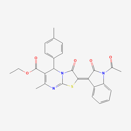 - Name: Ethyl 2-(1-acetyl-2-oxoindolin-3-ylidene)-7-methyl-3-oxo-5-(p-tolyl)-3,5-dihydro-2H-thiazolo[3,2-a]pyrimidine-6-carboxylate