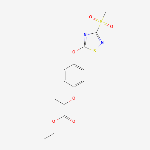 - Synonyms:1000573-04-5;Ethyl 2-(4-((3-(methylsulfonyl)-1,2,4-thiadiazol-5-yl)oxy)phenoxy)propanoate;Ethyl 2-{4-[3-(methylsulfonyl)-1,2,4-thiadiazol-5-yloxy]phenoxy}propanoate;ethyl 2-[4-[(3-methylsulfonyl-1,2,4-thiadiazol-5-yl)oxy]phenoxy]propanoate;ethyl 2-(4-[3-(methylsulfonyl)-1,2,4-thiadiazol-5-yloxy]phenoxy)propanoate;Ethyl 2-[4-[[3-(methylsulfonyl)-1,2,4-thiadiazol-5-yl]oxy]phenoxy]propanoate;ethyl 2-[4-[3-(methylsulfonyl)-1,2,4-thiadiazol-5-yloxy]phenoxy]propanoate;DTXSID901142365;MFCD09877879;A921171;Ethyl2-(4-((3-(methylsulfonyl)-1,2,4-thiadiazol-5-yl)oxy)phenoxy)propanoate;ETHYL2-{4-[3-(METHYLSULFONYL)-1,2,4-THIADIAZOL-5-YLOXY]PHENOXY}PROPANOATE